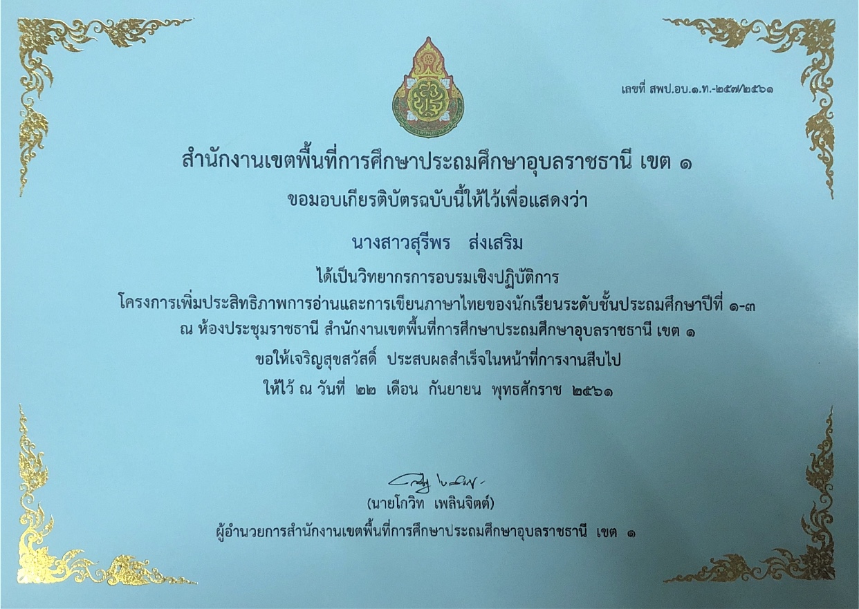 ชื่อผลงาน : วิทยากรการอ่านการเขียนภาษาไทยของนักเรียน ระดับเขต