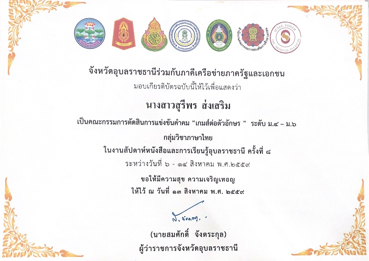 ชื่อผลงาน : คณะกรรมการคำคมภาษาไทย ระดับจังหวัด